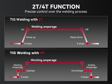 - La soldadura 2T/4T se adapta a sus diferentes necesidades, 4T es adecuada para soldadura continua a largo plazo.