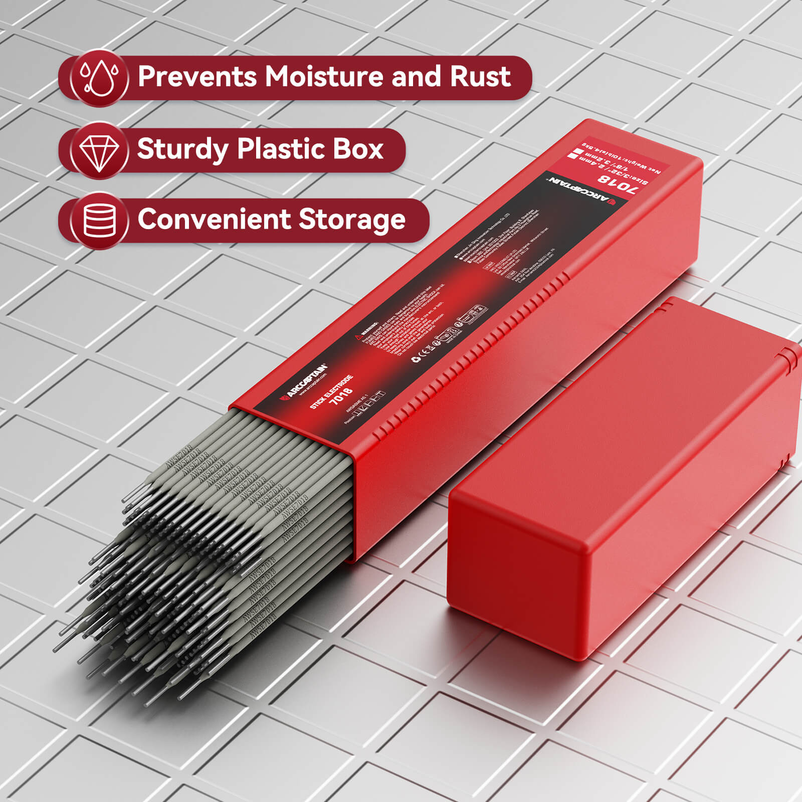 Low-hydrogen coating reduces the risk of hydrogen-induced cracking. Electrodes are vacuum-packed or moisture-resistant for reliable field use.