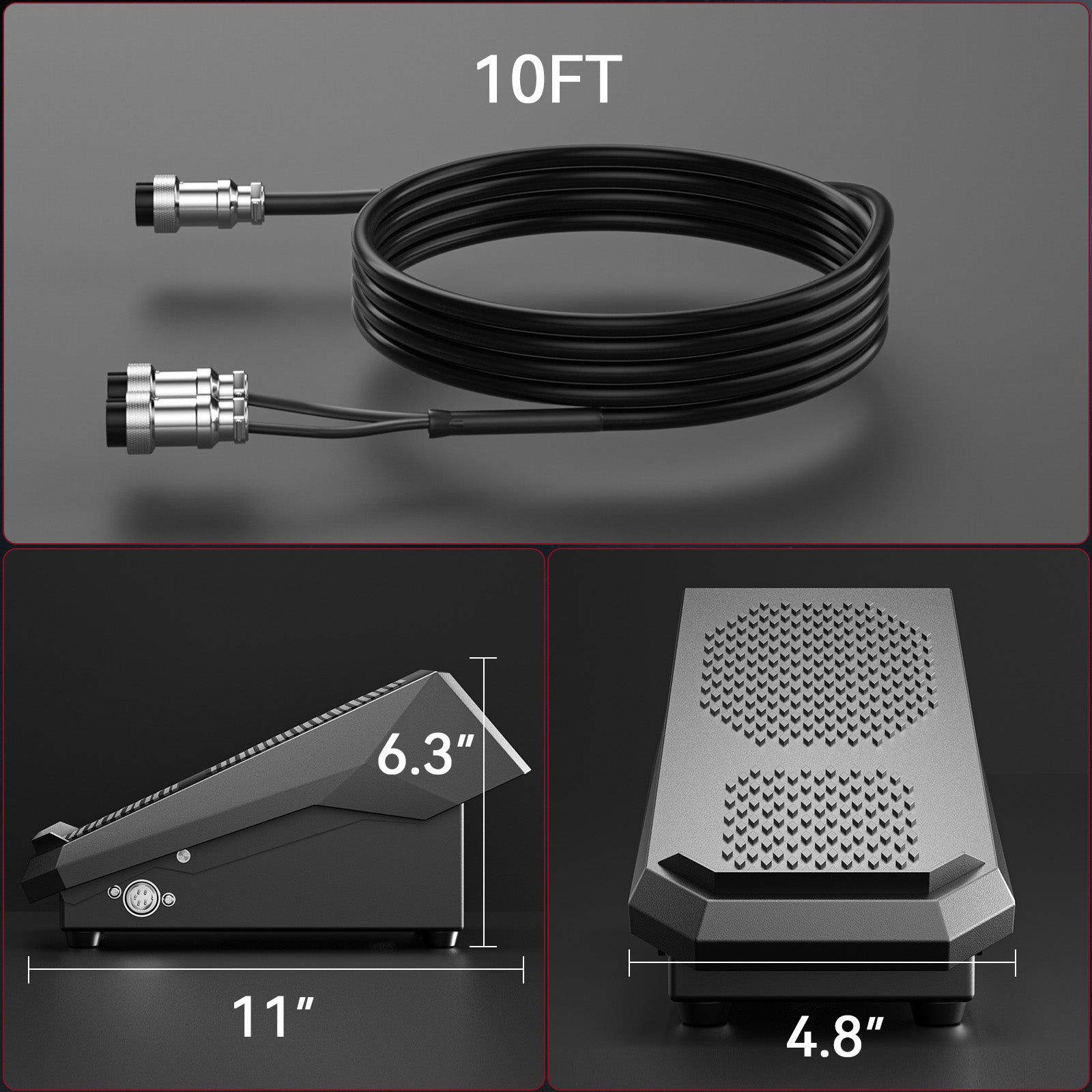 Durable y portátil: el pedal de control del amplificador de pie para soldar con una carcasa exterior resistente para una larga vida útil, cable de 10 pies/3 m, portátil y de alta confiabilidad.