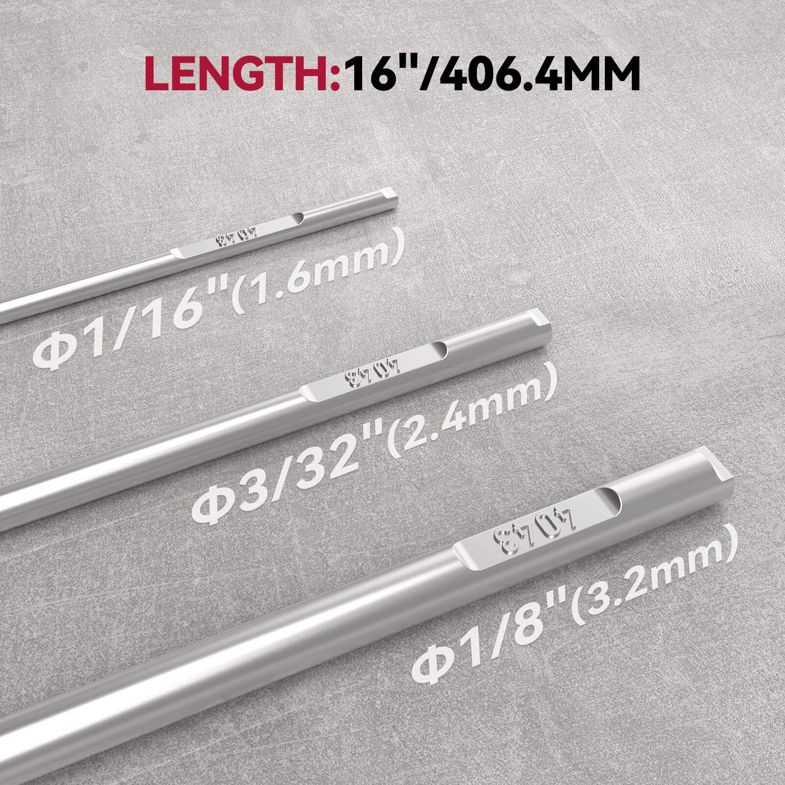 | Available Diameters | 1/16" (1.6 mm) · 3/32" (2.4 mm) · 1/8" (3.2 mm) |