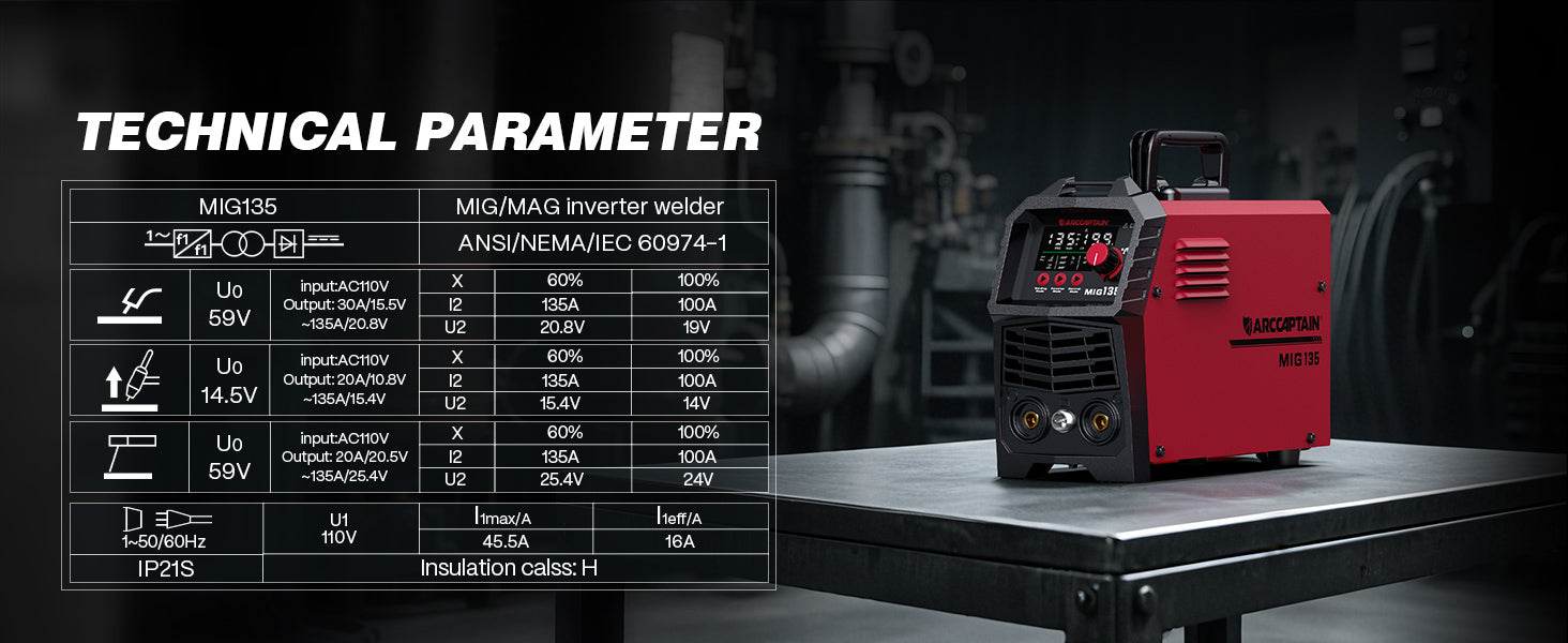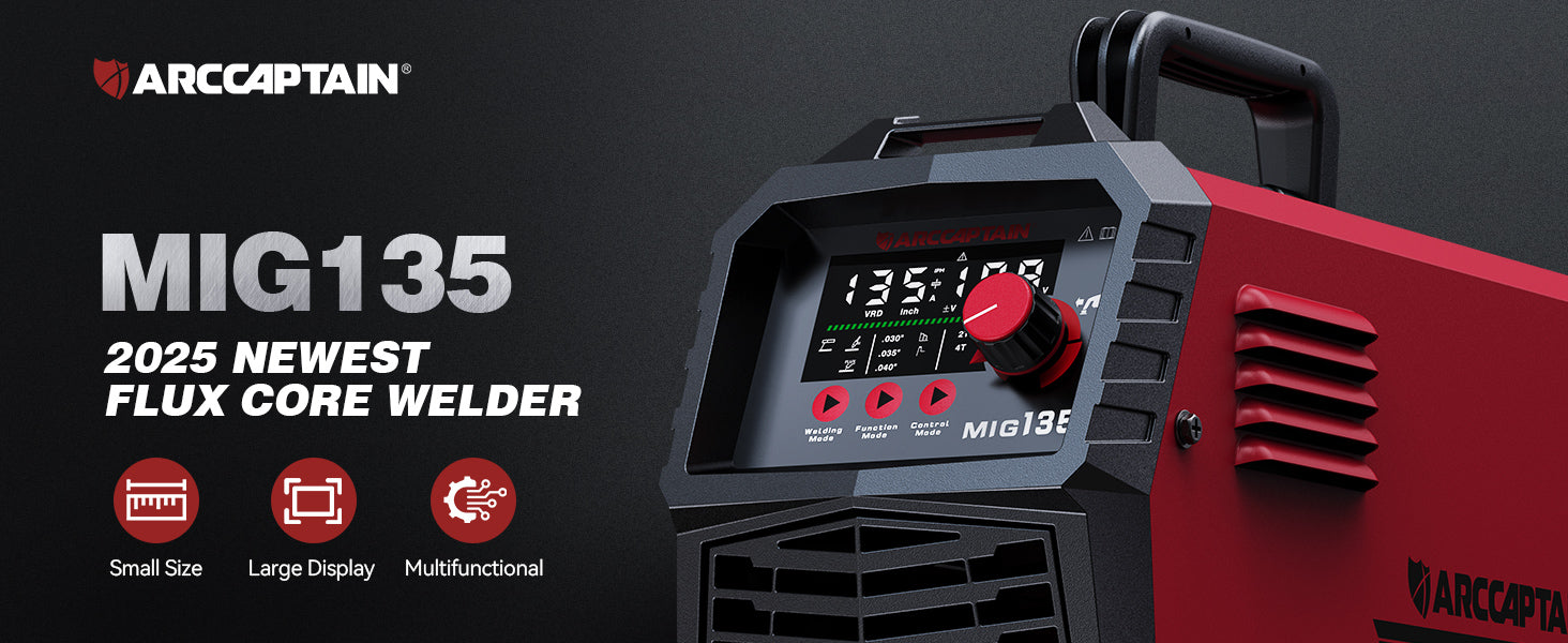 The Arccaptain MIG135 is a lightweight, 3-in-1 welding machine designed to make welding simple — even if you’re just getting started.