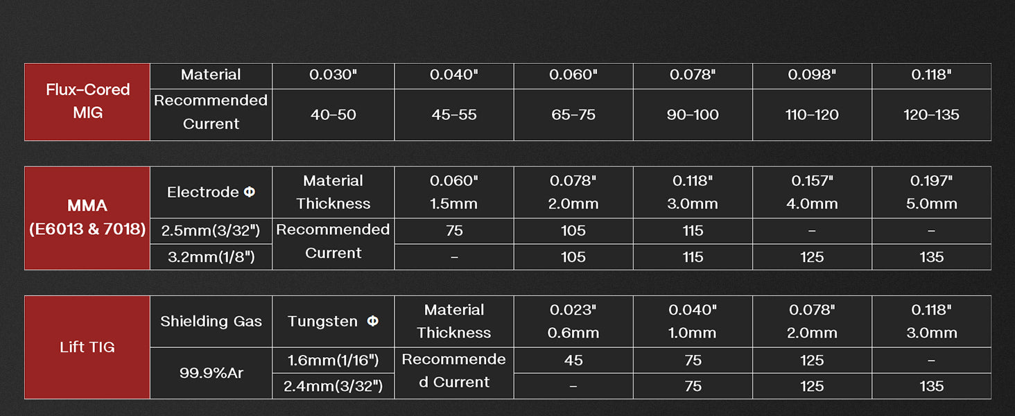 1. Three-in-One MIG Welder: The 135A flux core welder supports Gasless MIG, Lift TIG, and Stick/MMA welding (Lift TIG torch sold separately)