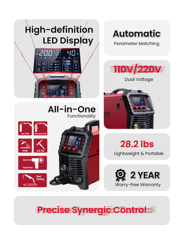 - A bright 4.3" digital LED display clearly displays voltage, amperage, and settings in real time — no need to lift your helmet. Fast, precise adjustments improve welding efficiency by 33%.