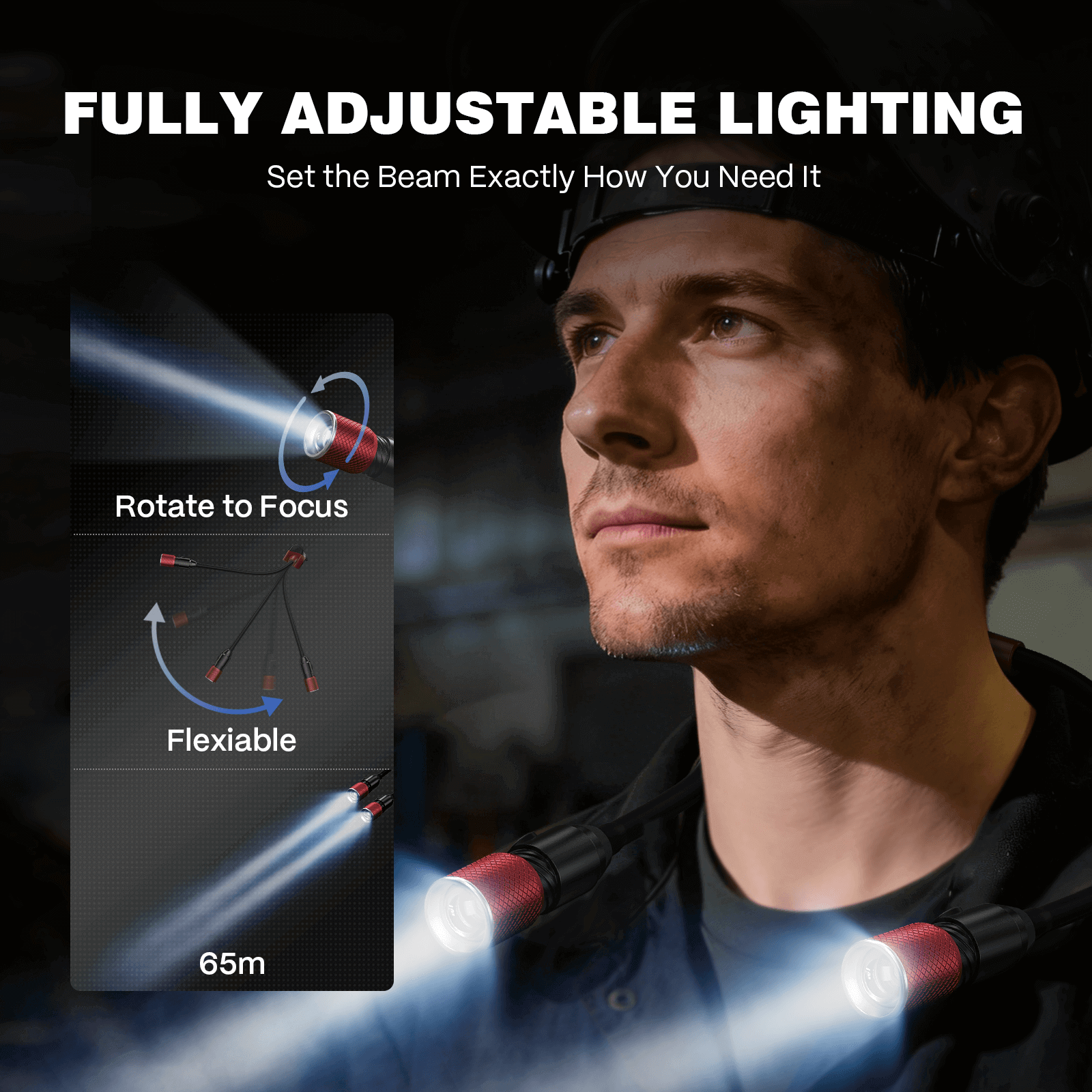 TradeElectricians & HVAC TechniciansPanel work, attic crawls, running conduit in unlit spaces. Adjustable focus lets you spotlight a specific terminal or fitting while keeping ambient light with the second head.
