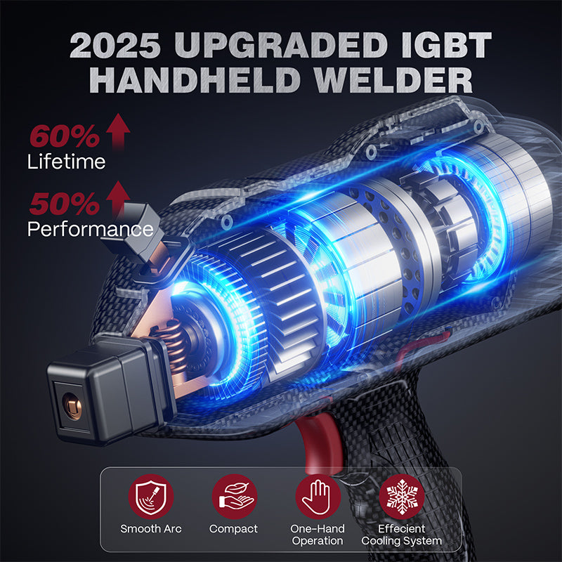 Compact, lightweight handheld welder – perfect for garages, workshops, and outdoor jobs.