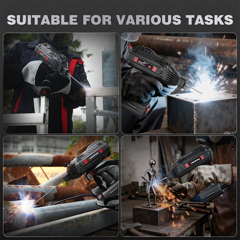 Portable & One-Hand Operation for Any Job: This handheld welder features a compact, highly integrated design, allowing effortless Welding Machine Handheld operation with one hand. Ideal for high-altitude work, home garages, workshops, or outdoor job sites, it provides professional-level welding wherever you need it. Its lightweight, ergonomic build ensures safe and comfortable handling for extended periods.