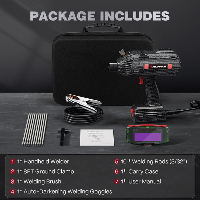 Complete Portable Kit with Accessories for Convenience: This portable arc welder comes with an EVA carrying case, protective gear, upgraded 2.5m power cord, and stable grounding clamp, allowing quick deployment anywhere. Whether for workshops, construction sites, DIY projects, or automotive repair, it delivers a safe, efficient, and professional welding experience while keeping all accessories organized and ready for transport.