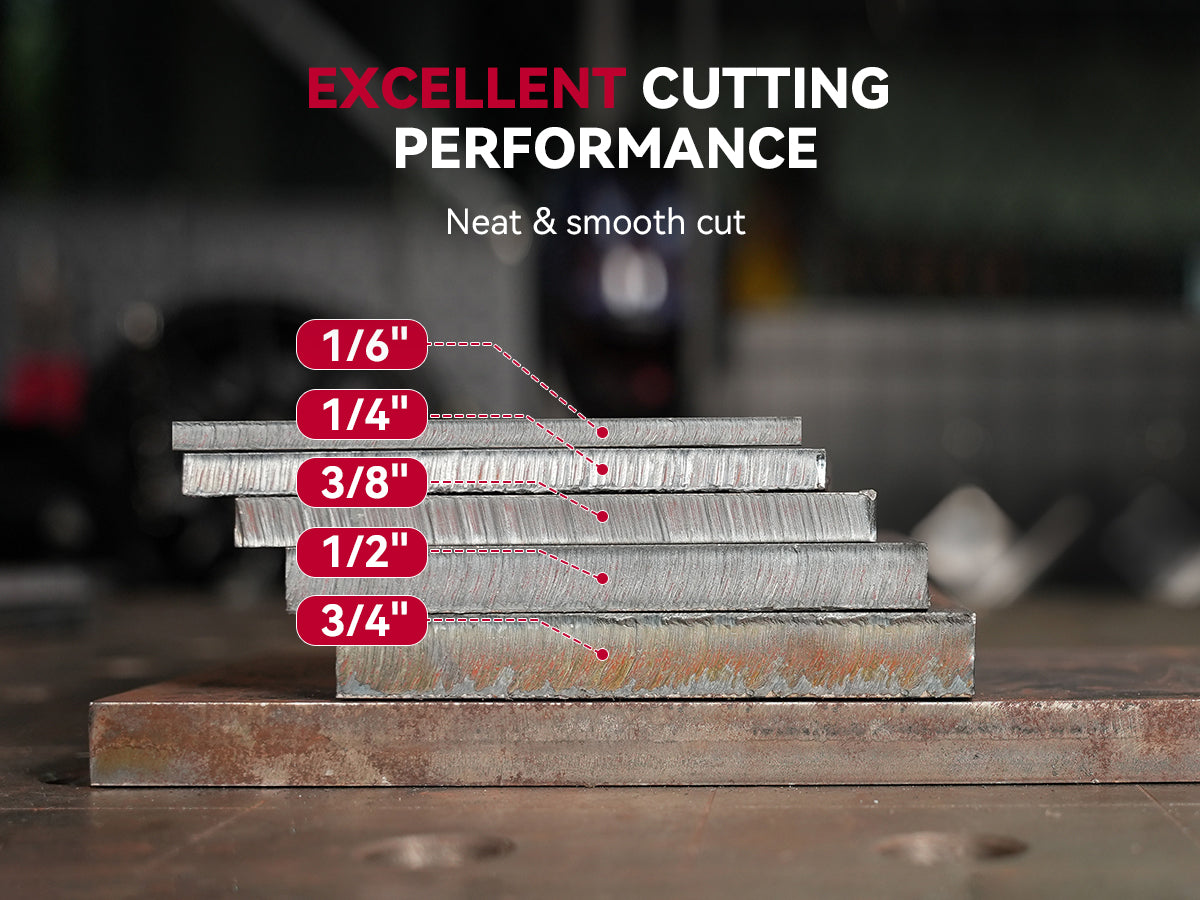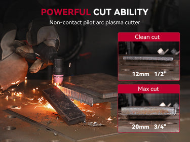 The ARCCAPTAIN Cut55 Pro Plasma Cutter is built to handle tough cutting jobs with ease, slicing through materials up to 1/2 inch thick and achieving maximum cuts of 15/16" inch. Whether you're working on clean or rough surfaces, this tool delivers precision and efficiency every time.