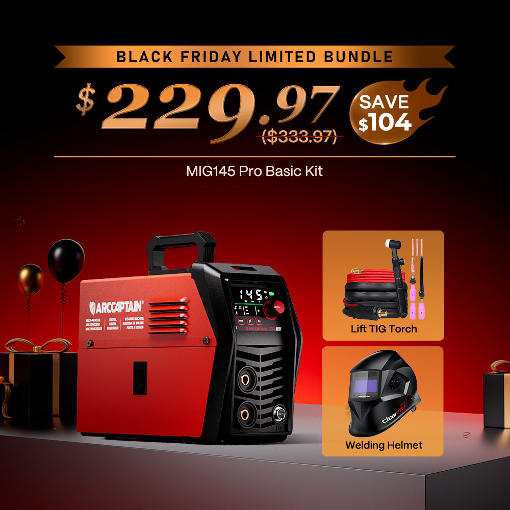 The ARCCAPTAIN MIG145 Pro is a compact 3-in-1 welder built for home and hobby use. It supports MIG, Lift TIG, and Stick welding — all in one lightweight machine. With smart features like a large digital display, detachable torch, and Bluetooth app control, it’s easy to use and ready for any small project.