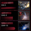 【AUTO DARKENING FILTER】This welding helmet features a high-end auto-darkening lens and 4 premium arc sensors, allowing seamless adaptation to various welding environments, including GRIND/CUT/ARC/MIG/TIG Welding. With DIN3 on light state and DIN4-9/9-13 on dark state, adjust the lens's shade and sensitivity for optimal performance. PLEASE NOTE: The side view does not auto-darken.