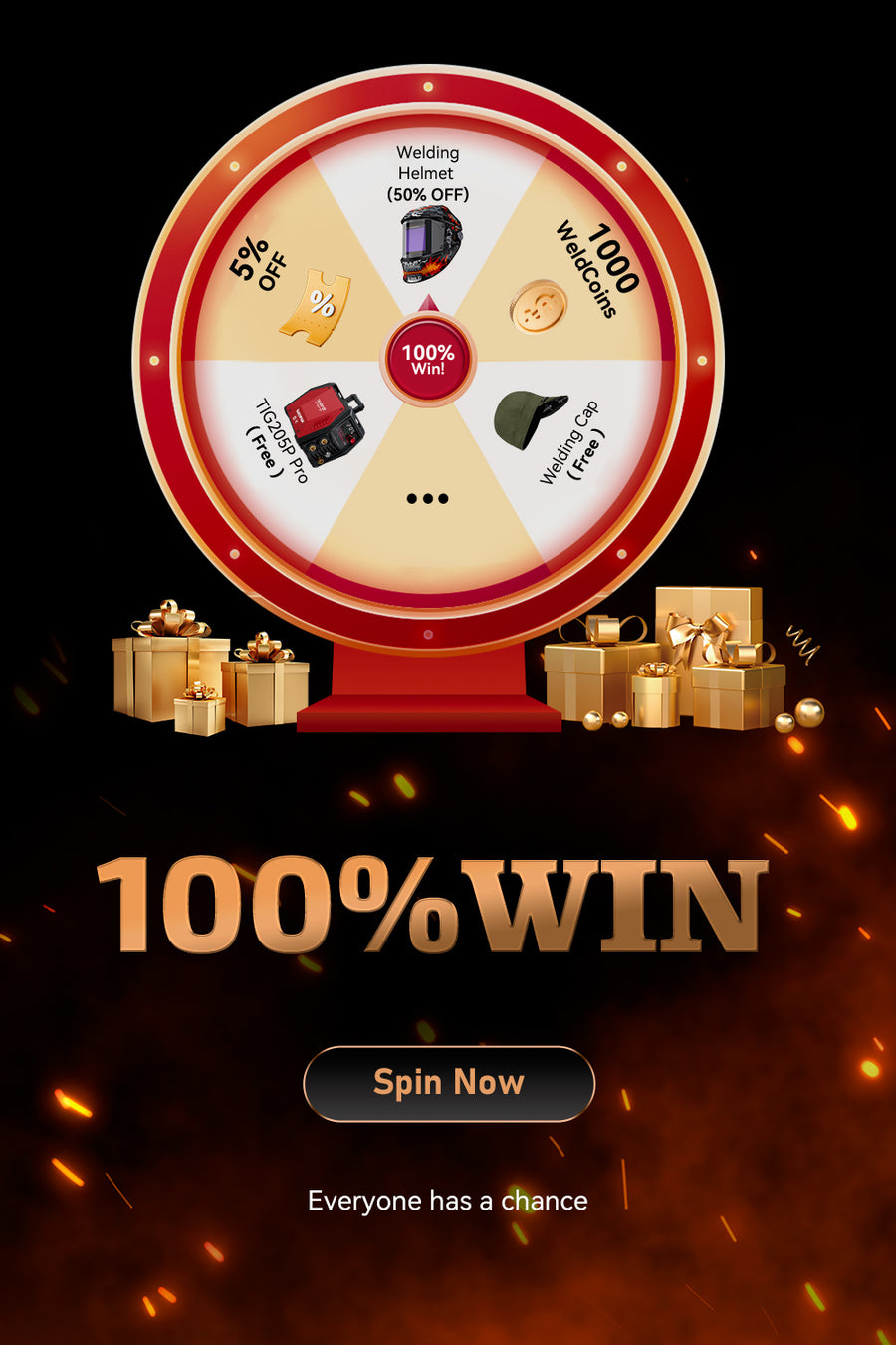 Once you win the code from the spin wheel: ① Go to the welding helmet product page. ② Select your helmet and add it to cart. ③ Apply the promo code at checkout to get it for 50% OFF ⚠️ Reminder: this code cannot be used together with other discount codes.