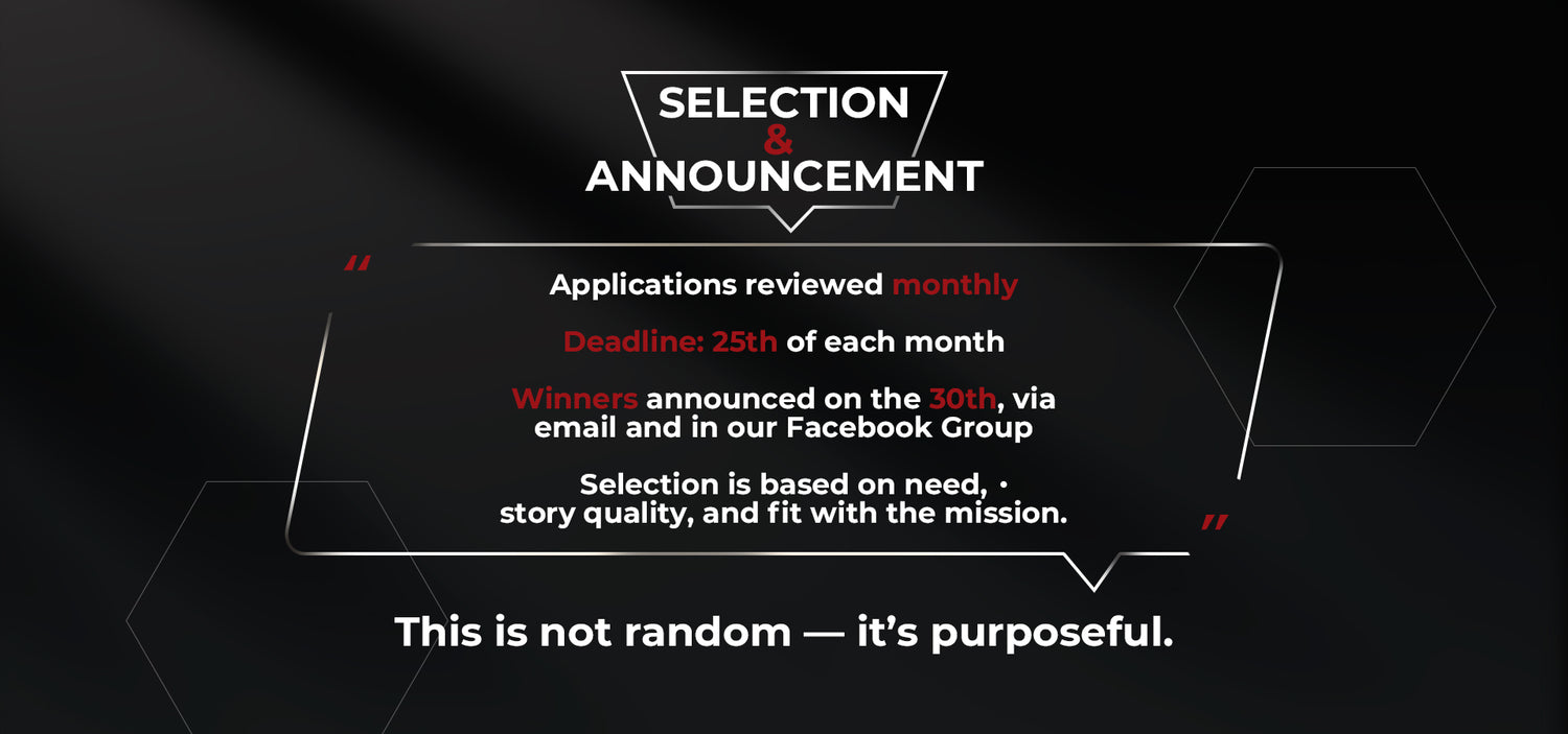 Submit by the 25th to be considered for the next round. Winners will be announced on the 30th via email and in our official Facebook Group.