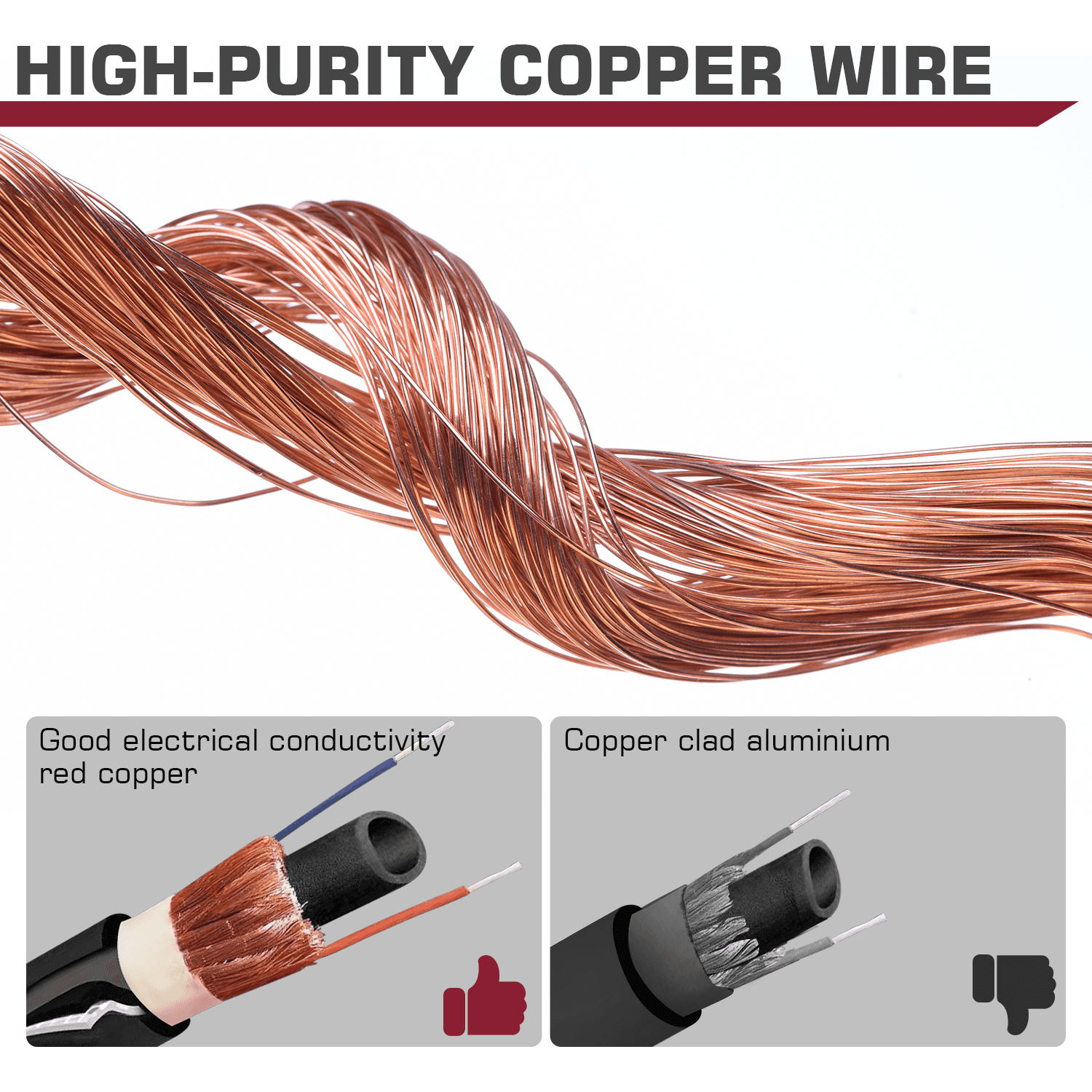 2.Robust Performance: Crafted with 6 square copper wires, our cable boasts a rated working current of 60A and a 60% duty cycle, offering durability and reliability. It supports extended use in cutters up to 60A and short-time work up to 80A, guaranteeing consistent performance.