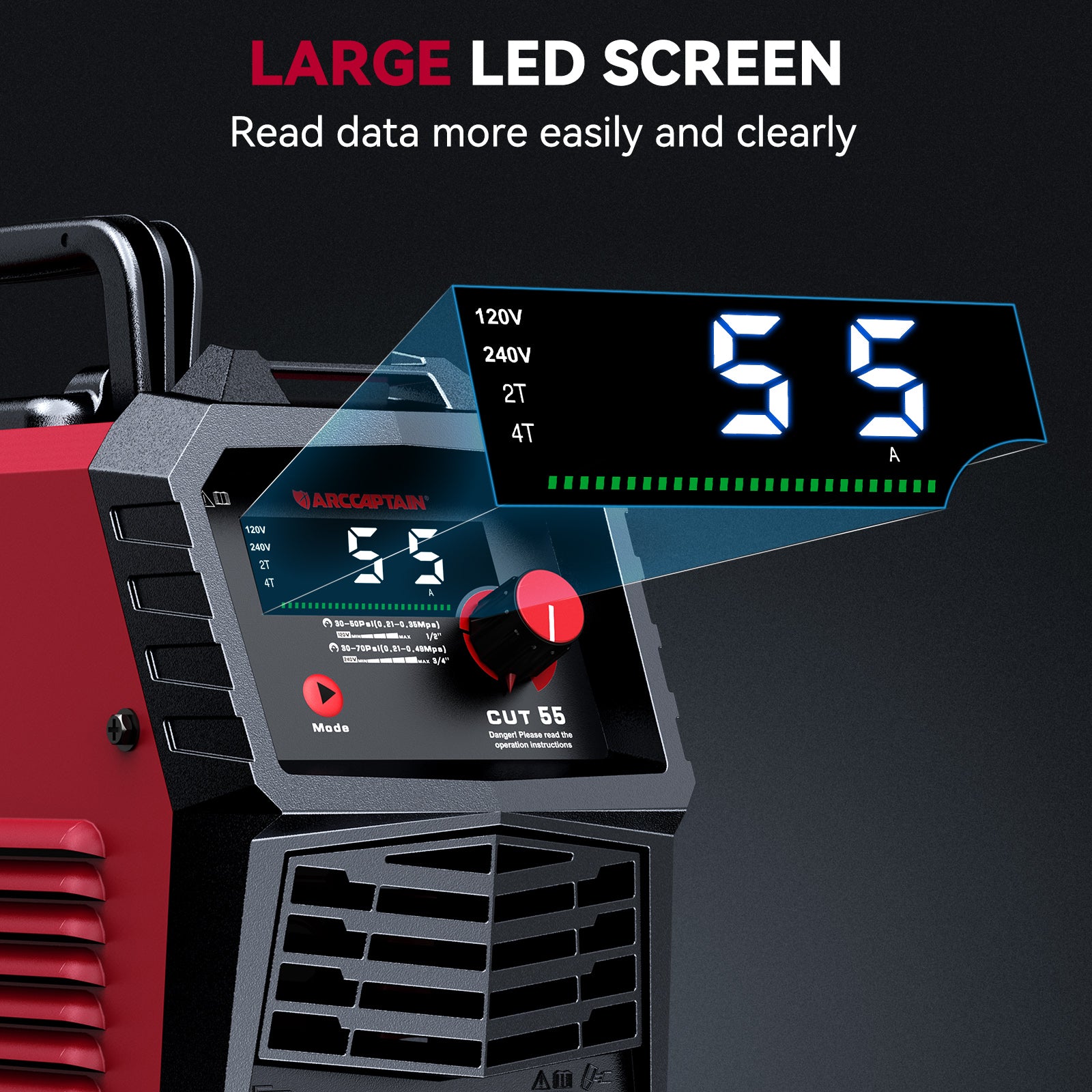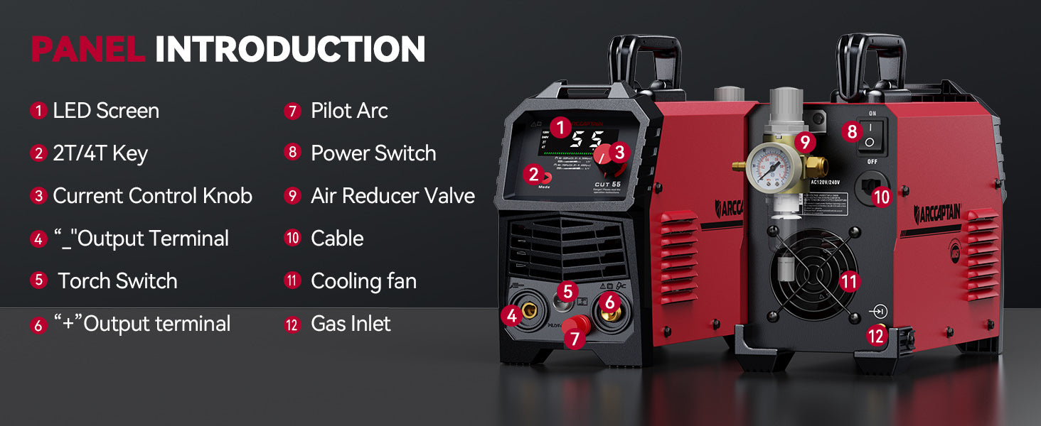 Arccaptain CUT55 Non-Touch Pilot Arc Plasma Cutter LED Display