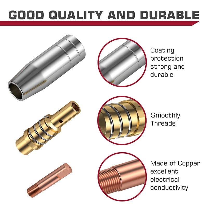 - Long-lasting Durability: The MB15 MIG Welding Gun Accessories Kit is built to withstand rigorous welding tasks, ensuring they can handle high temperatures and demanding work environments, providing long-lasting performance.