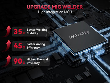 MIG205 Pro Welding Machine features a high-integration MCU chip for superior performance. Enjoy 35% better welding stability, 45% faster arc start, and 90% improved thermal efficiency for smoother, more reliable welds. Designed for precision and durability, it ensures optimal heat management and arc performance.
