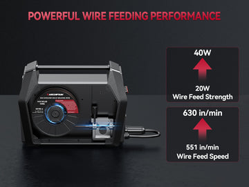 MIG205 Pro welder features a powerful 40W wire feeder, delivering smooth and consistent wire feeding. With a maximum wire feed speed of 630 in/min, it ensures improved efficiency, and high-quality welds for various applications.