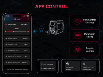 The newly designed MIG205 Pro lets you adjust settings remotely via a smartphone APP for ultimate convenience. Save your favorite settings for quick access and seamless operation. Enjoy precision control, improved efficiency, and a smarter welding experience anytime, anywhere.
