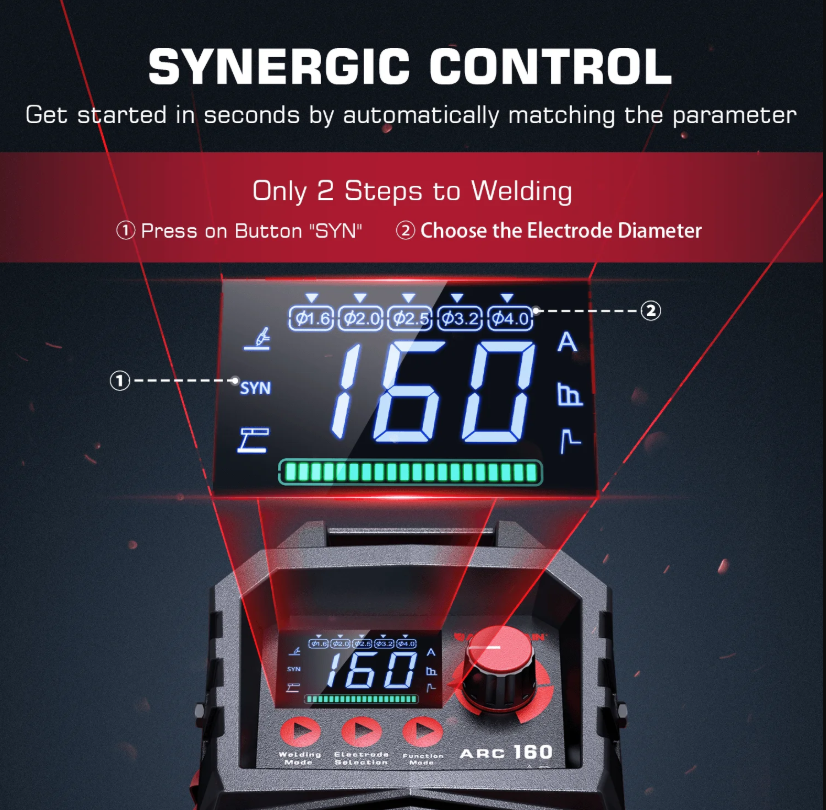 - SYNERGIC function :Automatically match the appropriate current.