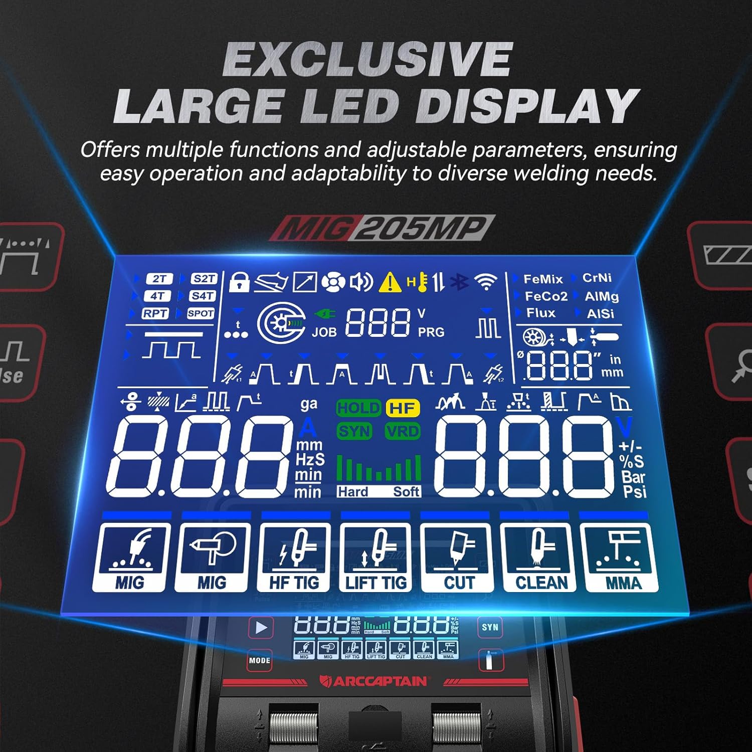Break free with the ARCCAPTAIN MIG205MP! Its large screen and SYN control make welding effortless, while the mobile app empowers you to fine-tune parameters and save your favorite settings for future use. With versatile modes and precision, it’s perfect for all skill levels.