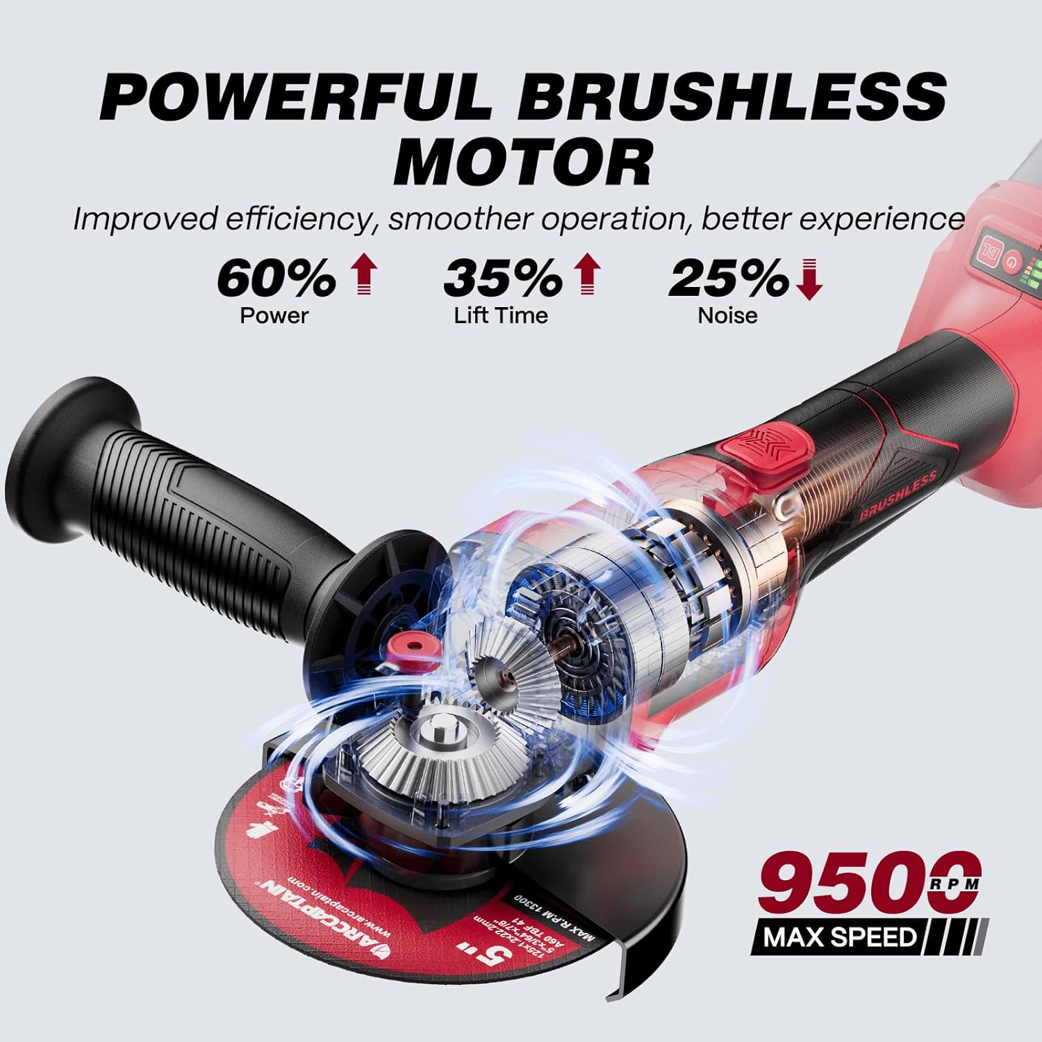 Built for performance, this cordless angle grinder features a high-efficiency brushless motor delivering up to 9500 RPM. The 3-speed adjustment (3300 / 6500 / 9500 RPM) allows you to switch between grinding, cutting, and polishing tasks with precision—ideal for metal fabrication, masonry, and home projects.
