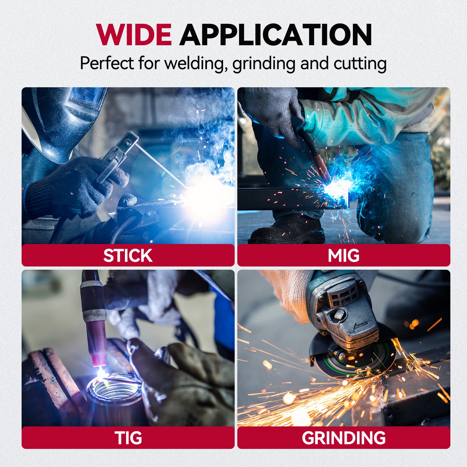 Multi-Function Use: Welding, Grinding & Cutting: This welding protective gear includes dedicated modes for grinding and cutting, making it a versatile solution for all-day workshop use. Comes with UV/IR protection rated at DIN13, ensuring full eye safety under all lighting conditions.