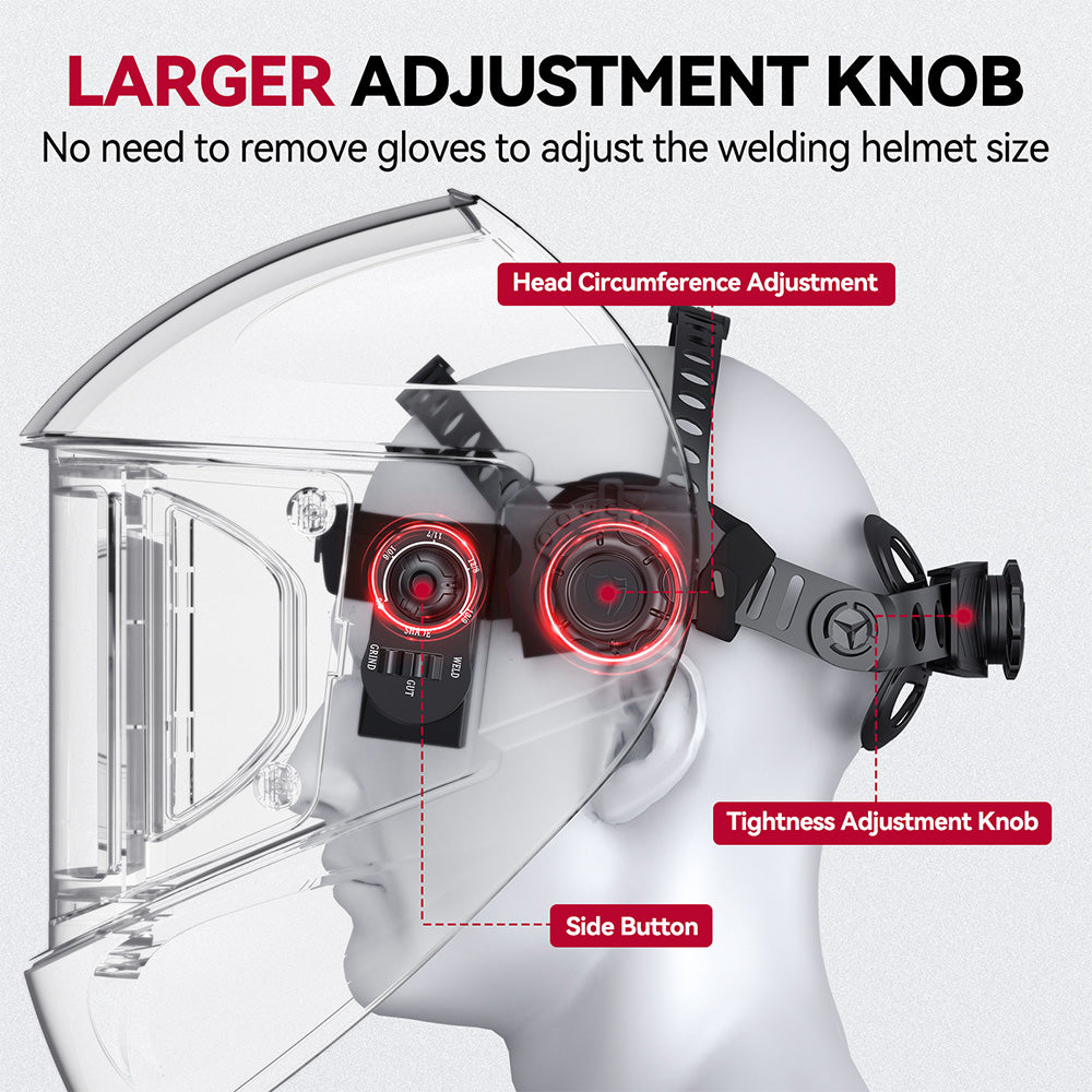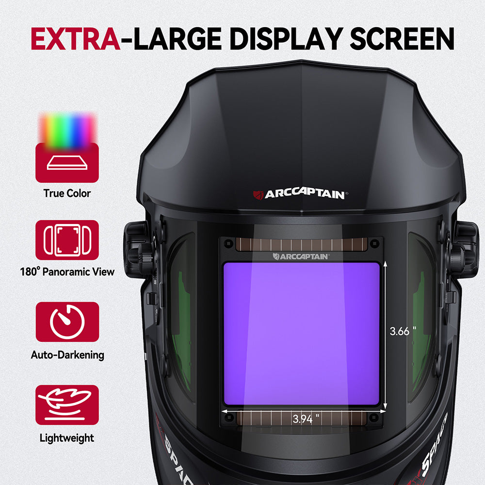 - Side View Screen – 3.94" × 1.70" Dual side lenses expand peripheral vision, boosting awareness and safety in every weld.