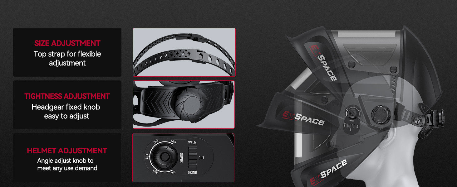 AUTO DARKENING FILTER: This welding helmet features a high-end auto-darkening lens and 4 premium arc sensors, allowing you to adjust the lens's shade and sensitivity for different working environments during ARC/MIG/TIG Welding. It provides DIN4 on light state and DIN5-9/9-13 on dark state.