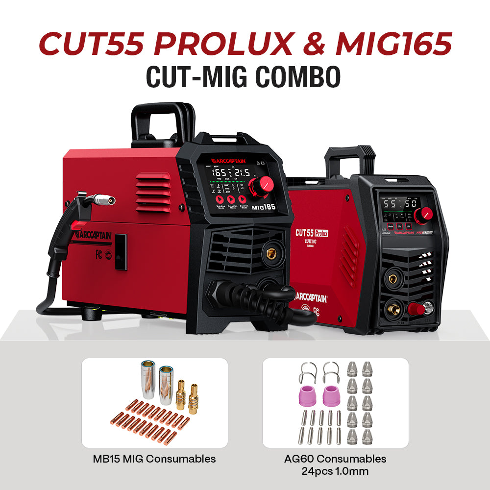The Arccaptain CUT55 Prolux is a pro-grade plasma cutter with a 7/8'' clean cut capacity, real-time air pressure monitoring, and smart modes like mesh cutting—all wrapped in a rugged, portable body backed by 3 years of protection.