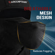 Mesh ventilation around the mouth improves airflow, while dedicated openings for glasses or goggles ensure a comfortable fit for eyewear users. The layered “two-in-one” look allows easy transition between welding, grinding, and general work.