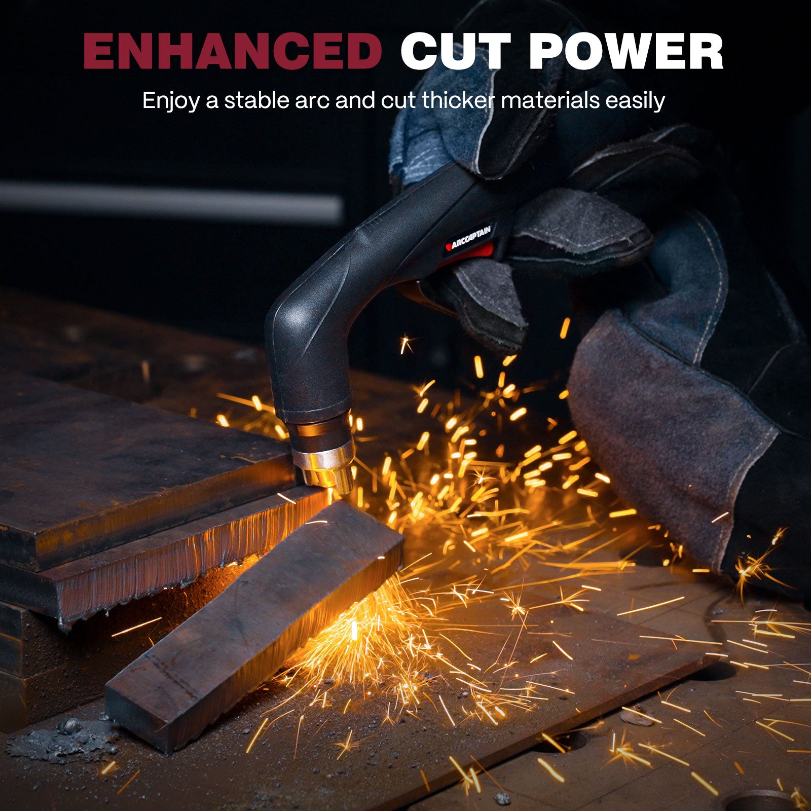 Supports both 120V and 220V dual voltages, enabling precise metal cutting under 8mm and up to 20mm (25mm max). Ideal for stainless steel, carbon steel, and other conductive metals — perfect for garage, workshop, or farm use. NOTE: Only compatible with ARCCAPTAIN plasma cutters CUT55 MP and CUT55 NON-HF. -