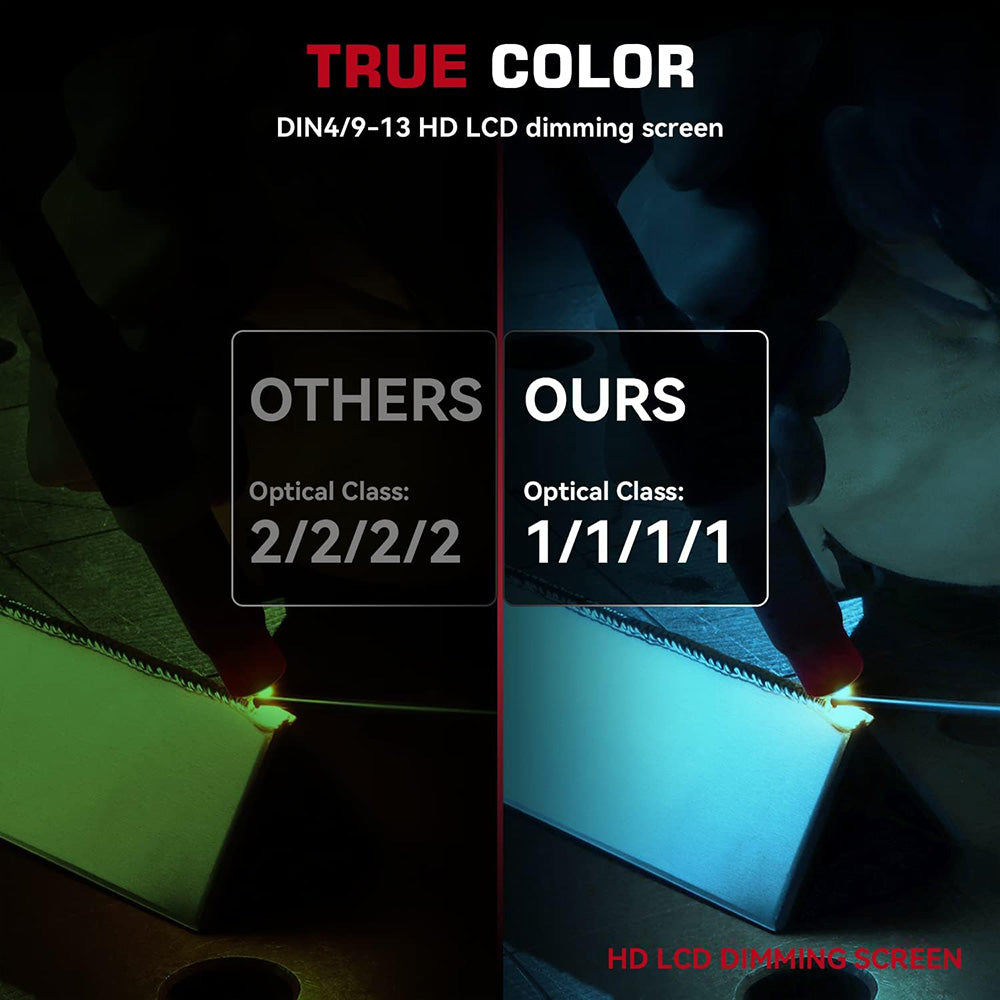 - 【LARGER & CLEARER SCREEN】Viewing Size 3.86" x 1.69". Our welding helmet featuring a 1/1/1/1 optical clarity lens and advanced true color technology, provides a clearer and more realistic view for enhanced efficiency and precision. Cheater Lens / Magnifying Lens Compatible Design.