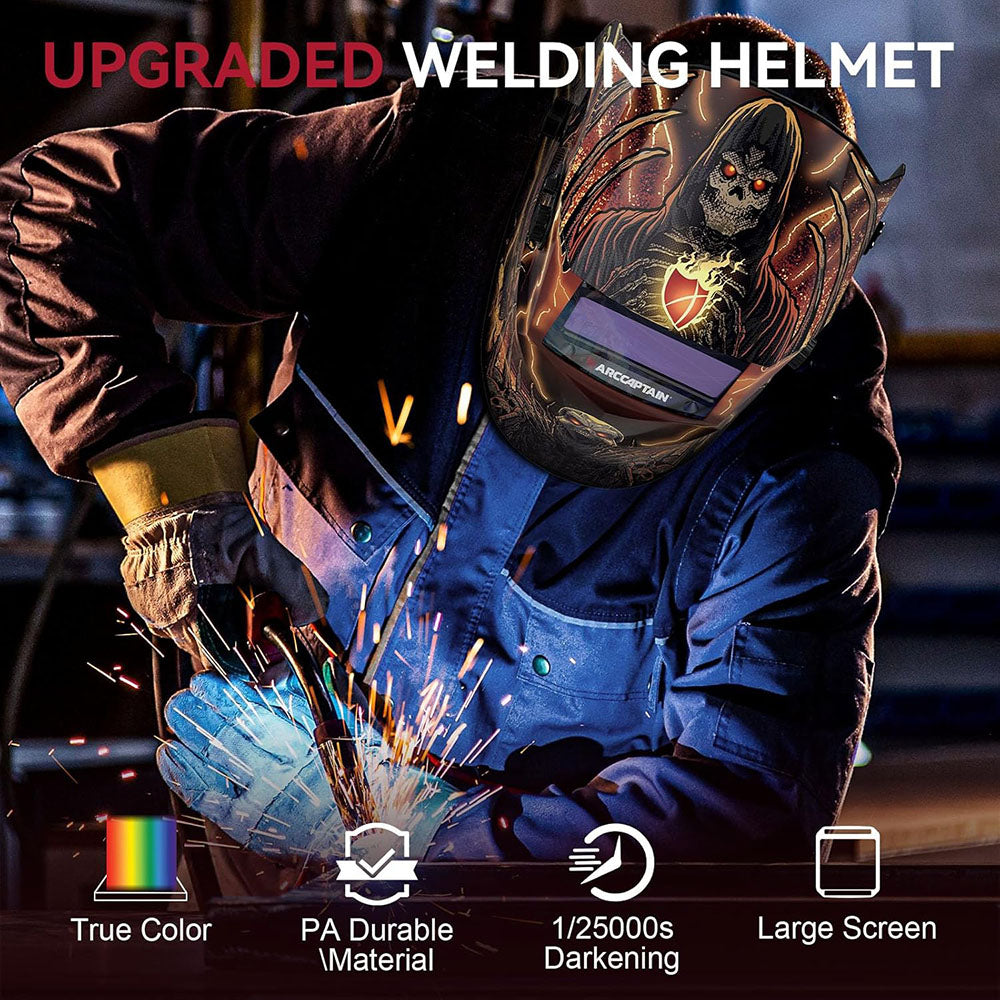 - 【200% LONGER SERVICE LIFE】Powered by solar cells and replaceable CR2450 lithium batteries, it supports longer working times. The welding helmet is made of high-quality PA material, featuring shock, heat, and wear resistance. Compliant with ANSI Z87.1/EN379 CE/CSA Z94.3 standards.