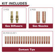 - High-Value Kit: Includes 2 gas nozzles (21-50), 20 contact tips (11-35), and 2 gas diffusers (35-50).