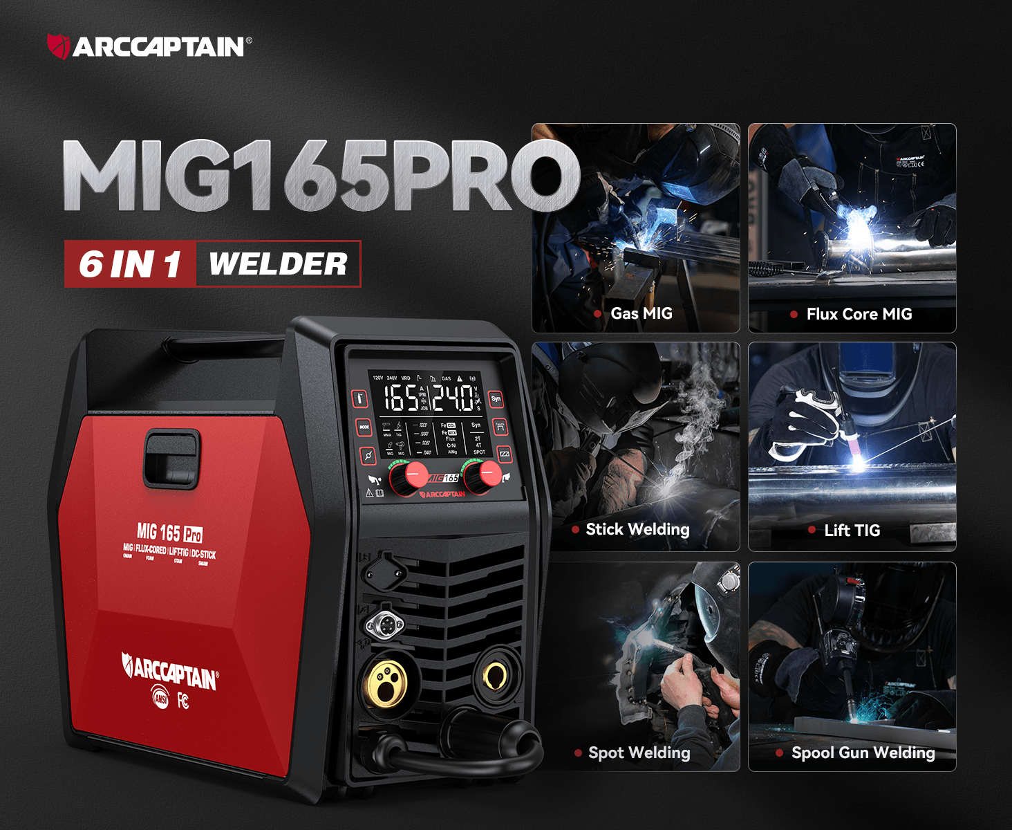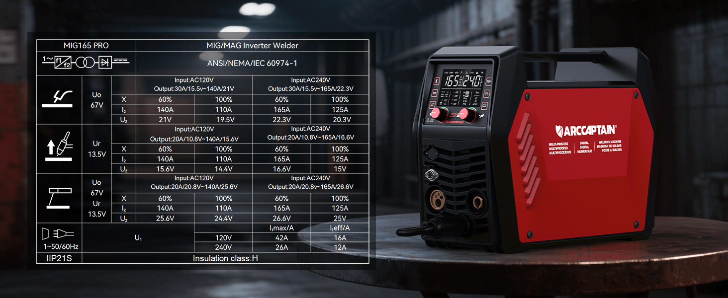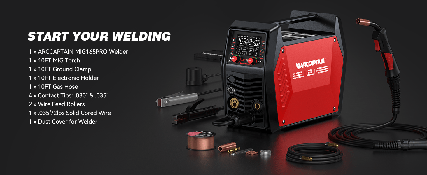 Arccaptain MIG165 Pro Dual Voltage Gas and Gasless MIG Welder