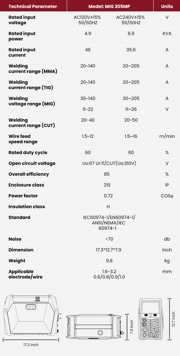 MIG205MP offers easy welding with MIG, Pulsed MIG, Gasless MIG, and more. It delivers precise, powerful results for both beginners and professionals, perfect for any welding job.