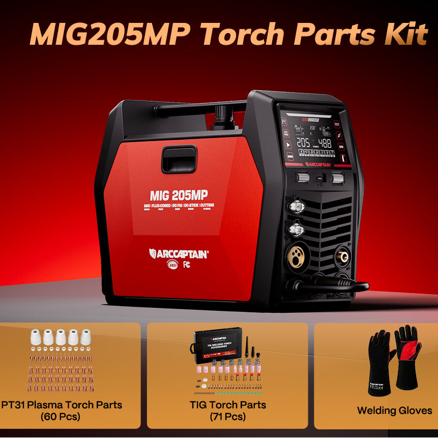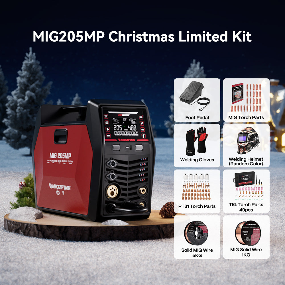 Combining MIG, Pulse MIG, TIG Pulse, MMA, Plasma Cutting, Flux-Cored, and Cleaning in one compact machine, the ARCCAPTAIN MIG205MP offers high-frequency TIG start, foot-pedal control, and efficient cooling for precision and reliability on every job.