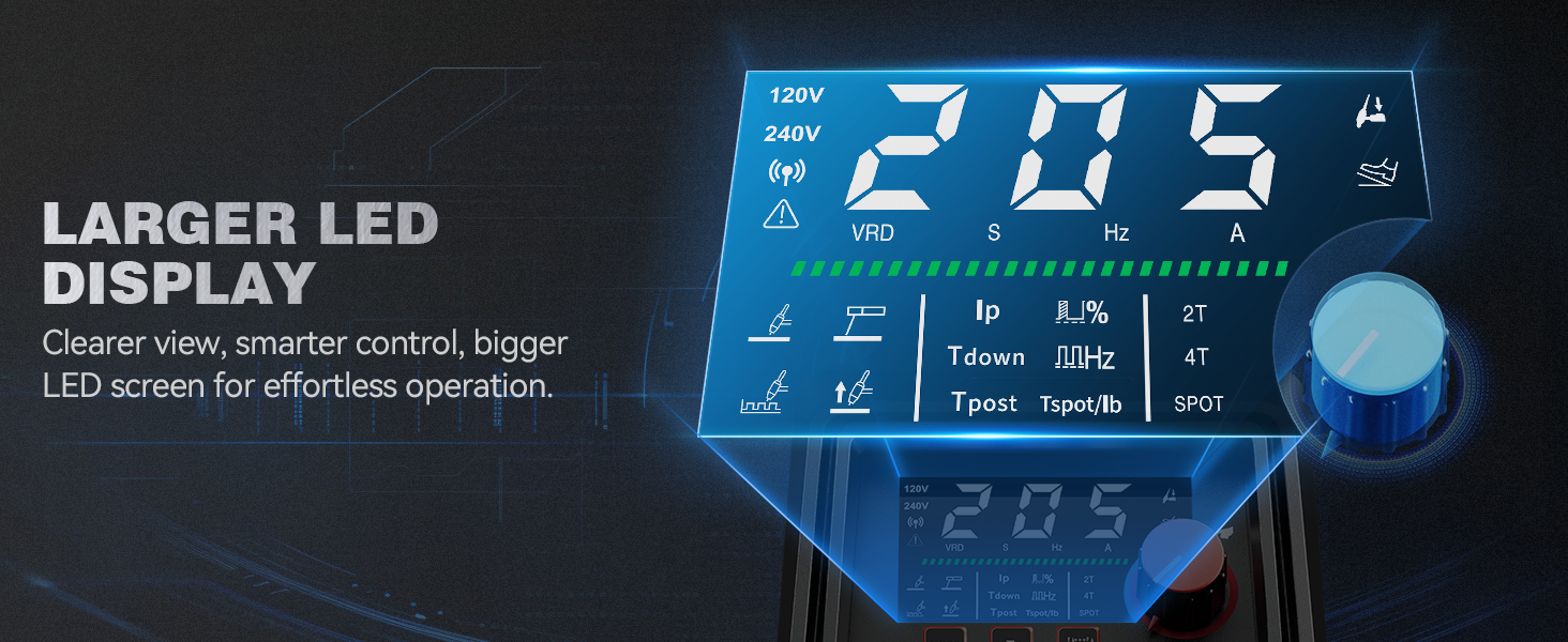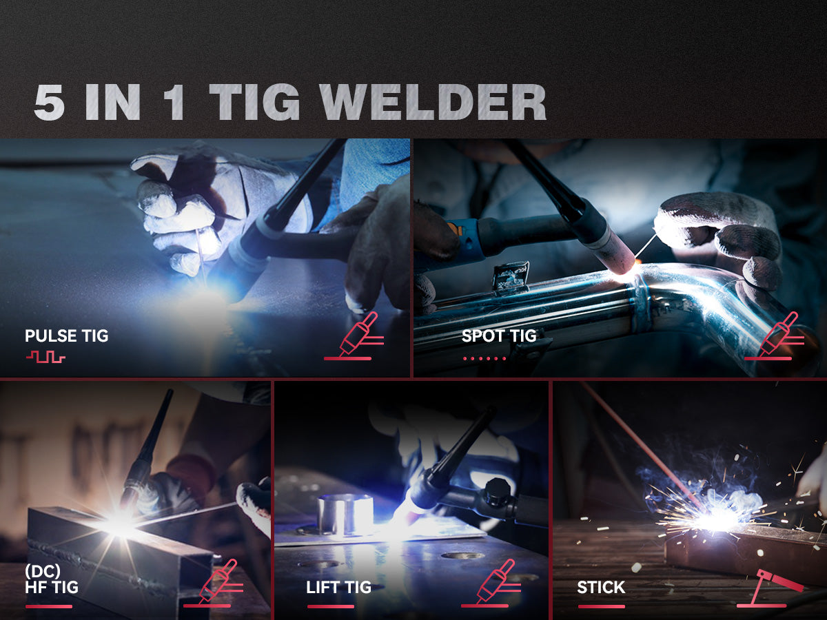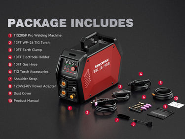 1. Multi-Process TIG Welder: TIG205P Pro combines HF DC TIG, Pulse TIG, Lift TIG, Spot TIG, and MMA—ideal for stainless, mild steel, copper, and more. Swap between functions in seconds.
