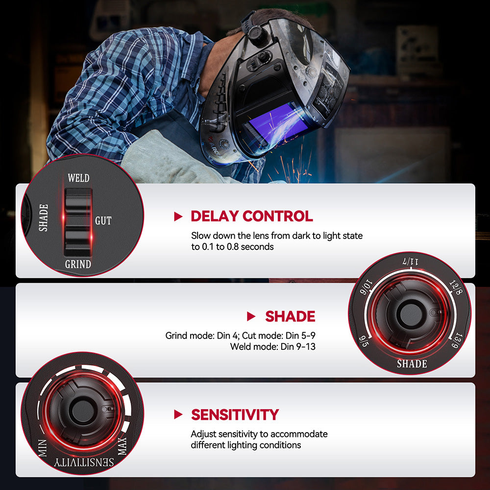 - Professional-Grade Customization: Whether you're a hobbyist or a pro welder, the ability to customize your helmet's shade to the exact intensity makes your setup more responsive, accurate, and comfortable during extended welding sessions.