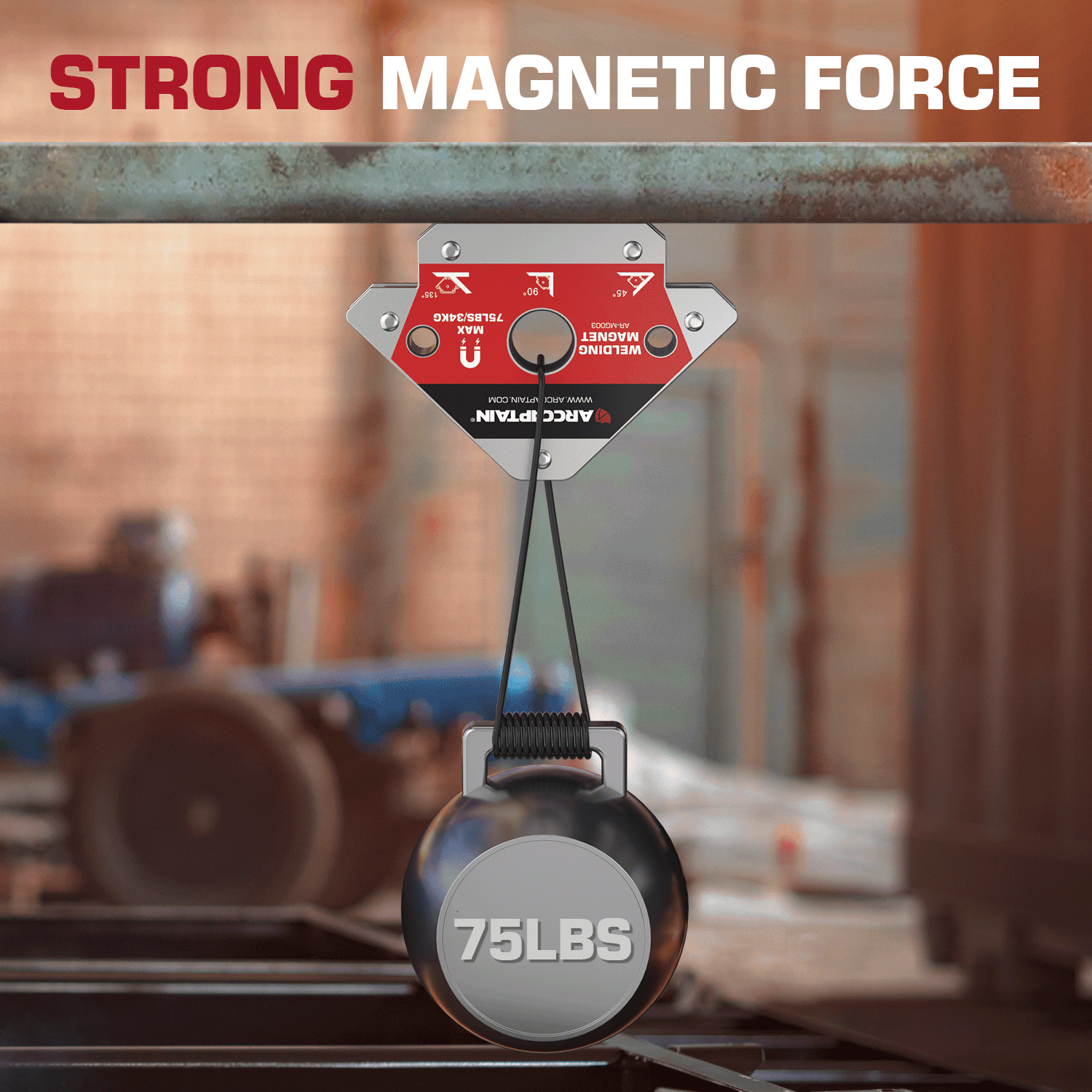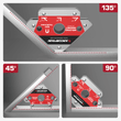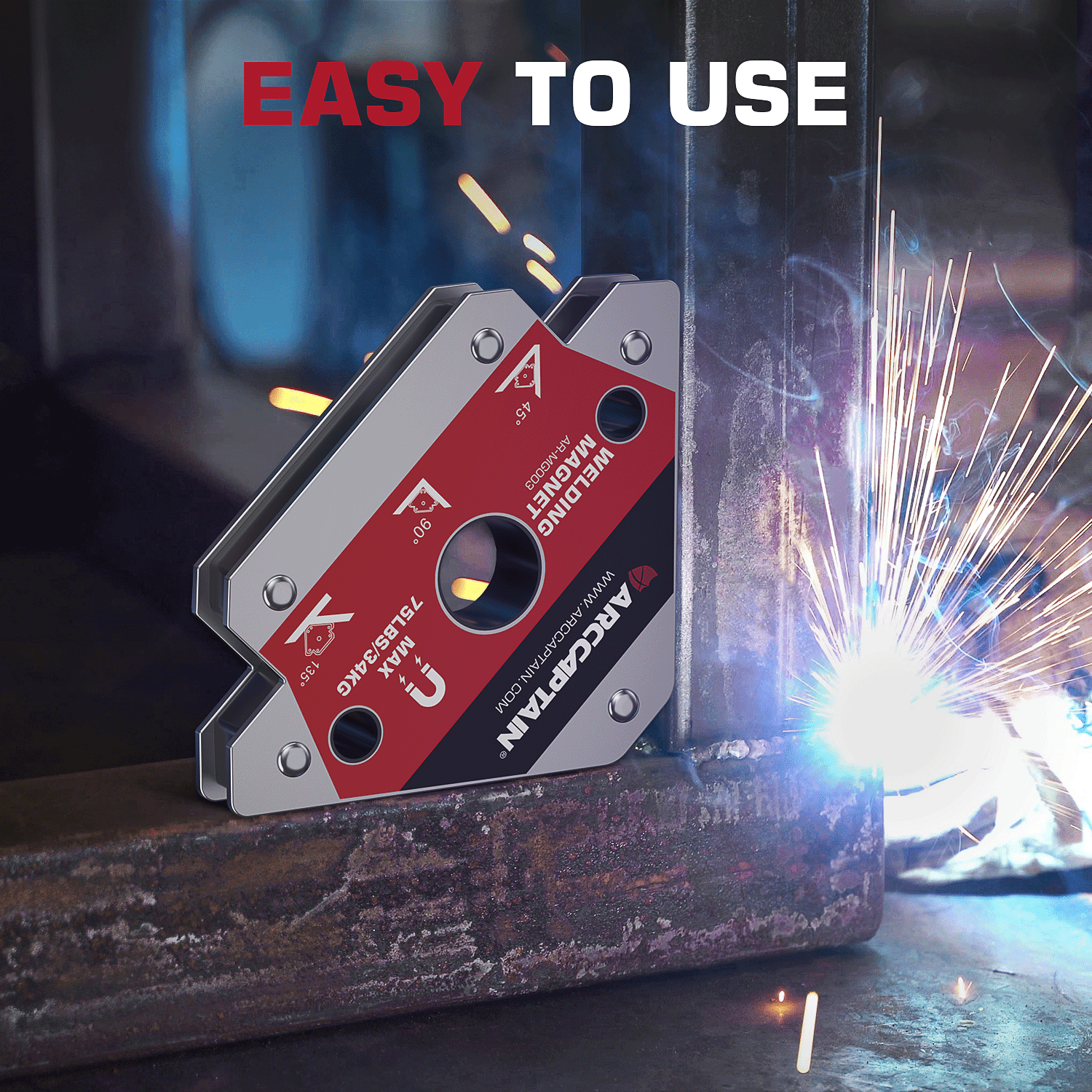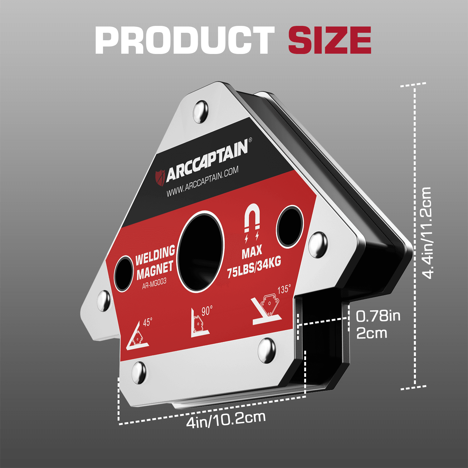 - 【MULTI-ANGLE WELDING MAGNETS】 45°, 90° and 135° three angles arrow design that provide quick and secure set up for common welding tasks. Magnets are rotated to the required angle and support the two or three workpieces during the welding operation.