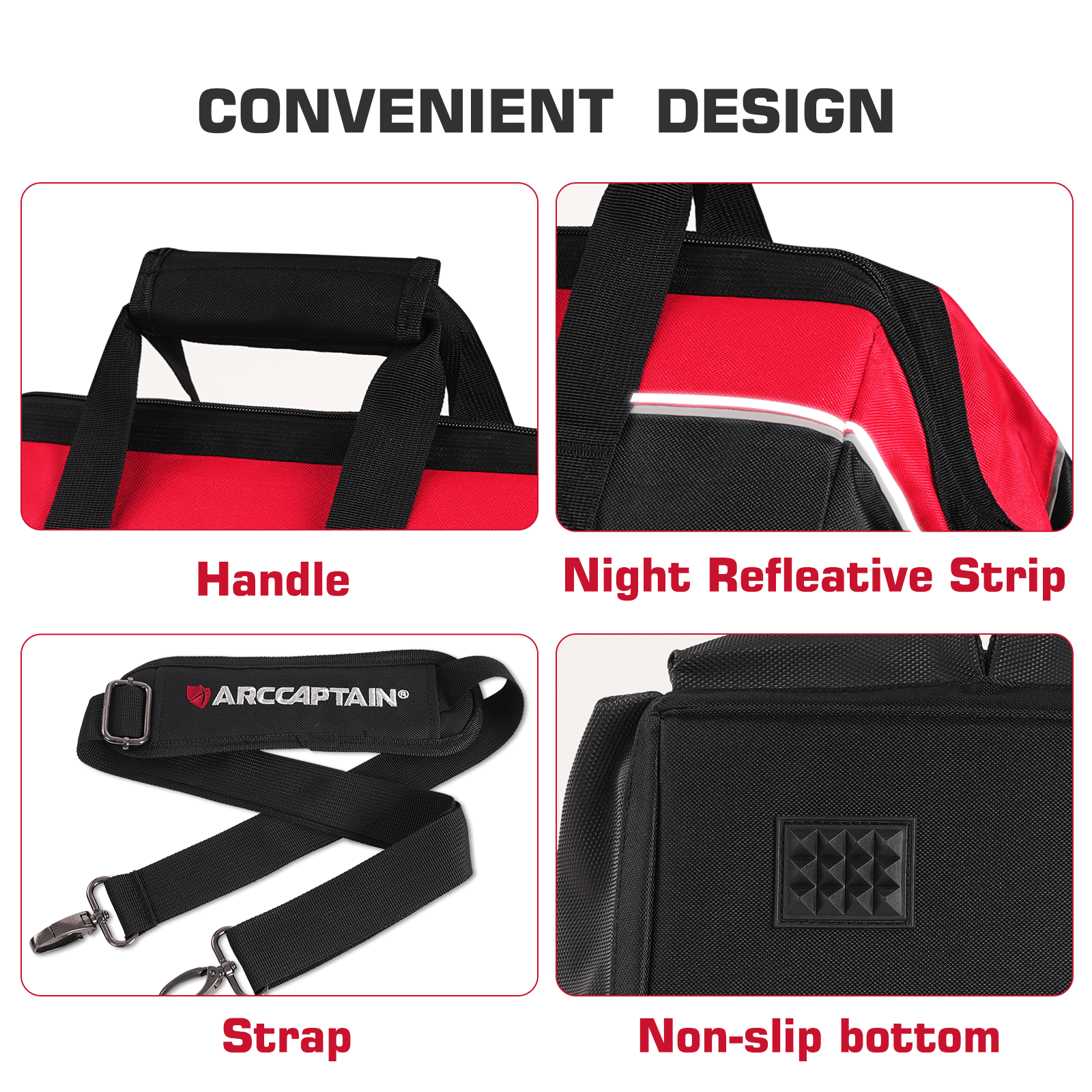 【Expanded Capacity】Designed for professionals, ARCCAPTAIN Tool Bags come in two sizes to accommodate a wide range of tools and machines. The 13-inch and 16-inch Tool Bags provide ample space for your equipment, ensuring everything stays organized and accessible, whether it's welding gear, electrician tools, or other essentials.