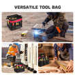 【Premium Quality & Waterproof】Crafted from 600D polyester fabric, our tool bags guarantee unmatched durability and reliability. With double-layer waterproof construction and meticulous stitching, they protect your tools from moisture damage and withstand tough working conditions, making them the ideal choice for welding tool bags, electrician tool bags, or general-purpose backpack tool bags.
